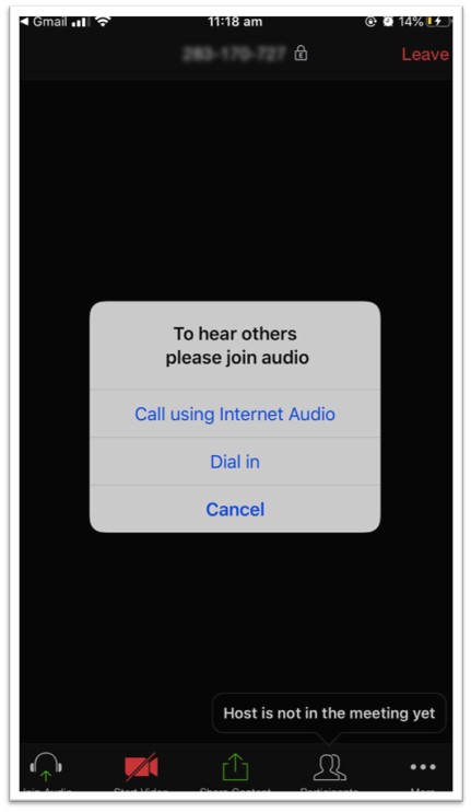 - You have now successfully joined the meeting, tap ‘OK’ and ‘Call using Internet Audio’ to enable microphone and sound on your computer device’s audio or headset