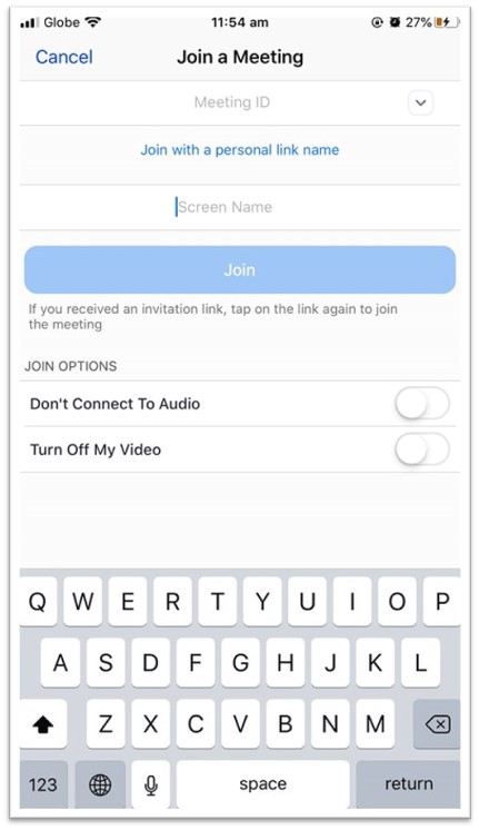 Joining a Zoom meeting using a Meeting ID