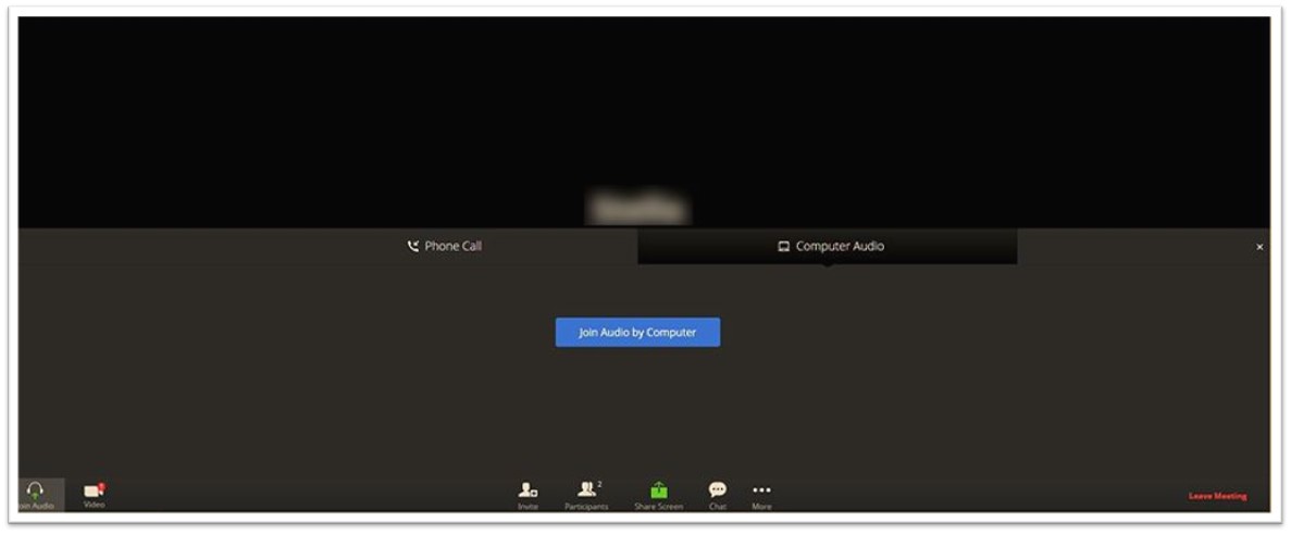 - Once you have successfully entered the meeting room, click on ‘Join Audio by Computer’ to enable microphone and sound on your computer device’s audio or headset.