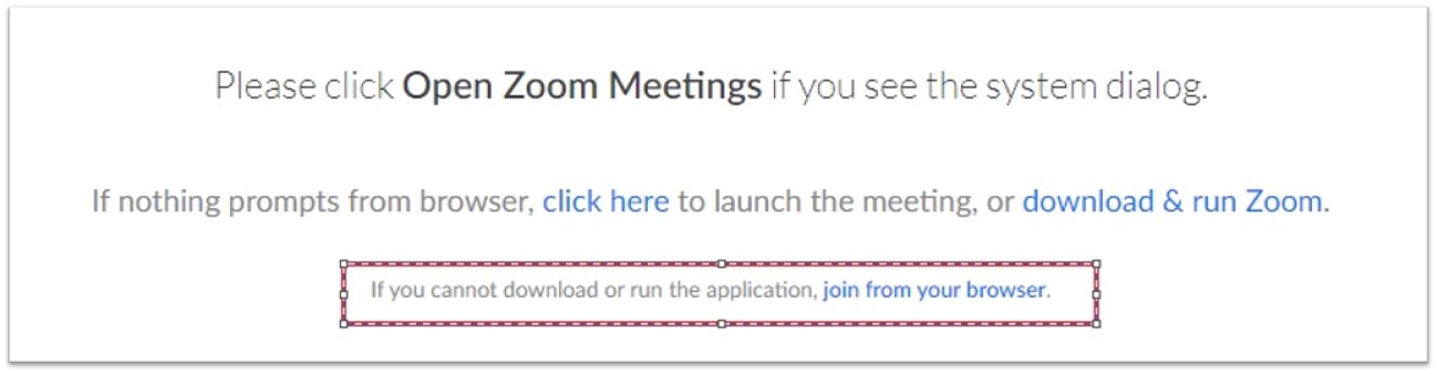 - Click on ‘click here ’ and the prompt below appears, then click ‘join from your browser’.